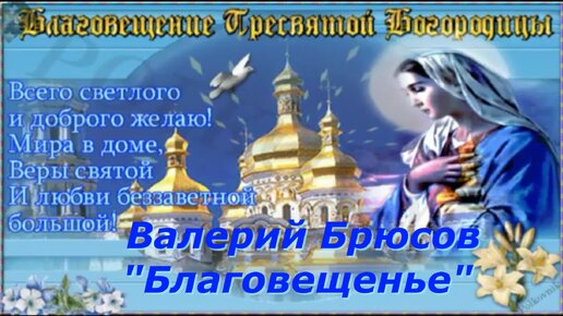 Для вас стихи посвященные великому празднику Благовещенье, . А. Ахматова "Отпустила я на волю", В. Брюсов "Благовещенье"