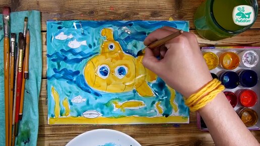 Урок рисования красками - рисуем желтую подводную лодку