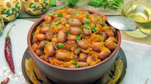Подойдёт как для постного, так и для обычного повседневного стола. Фасоль с овощами в томатном соусе.