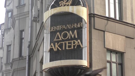 Арбат в районе Центрального дома актёра и театра имени Вахтангова. Разглядел странную скульптуру на Доме актера (1 м. 23 с.)