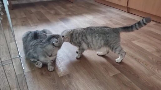 Папа кот и мама кошка обнюхиваются, целуются друг с другом и воспитывают своих котят