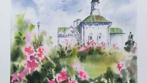 Далее: Рисую летний пейзаж с храмом акварелью.