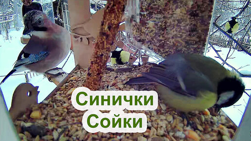 Синички 🐤 и Соечки 🐦 на мартовской кормушке 🐥 1 час видео