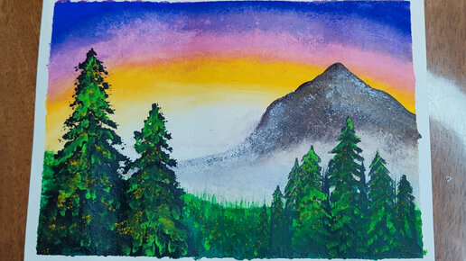 Туман в горах | Картина гуашью