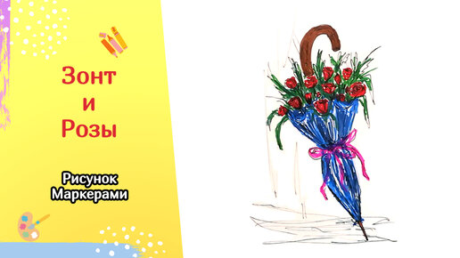 Как нарисовать Зонт и Розы маркерами / Рисуем фантазии на вольную тему🤩