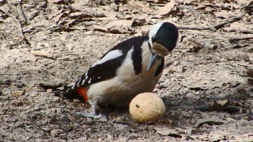 Далее: Дятел кормит орехами своего птенца, а белки едят сами