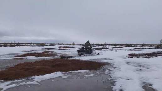 СНЕГОХОДЫ ТОНУТ В БОЛОТЕ. Снег и вода.Завозим материал и строим ТЕПЛУЮ ЗАСИДКУ. Крайняя заброска.