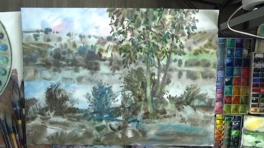 Мастерская "Умная Акварель" Сергея Галеты. Этюд пейзажа Аля прима по сырому листу" На Волге" МК. ч.1.