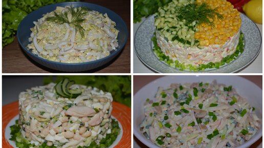 Ешь и не можешь остановиться! Обалденные салаты с кальмарами! Делюсь способом приготовления кальмаров для салата, всегда мягкие и нежные!