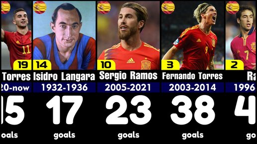 25 лучших бомбардиров национальной сборной Испании