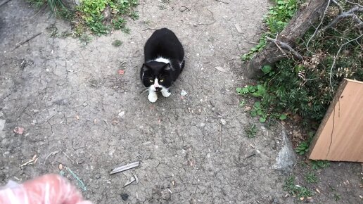 Дразню кота на мясо - Борода злиться, но уже не щепить. Хроники зимующего в палатке у моря в Крыму 10.04.2023г.