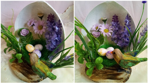 Супер идея на Пасху! Сделала за 10 минут. Пасхальная композиция с птичкой.