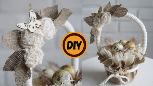 Пасхальная композиция за 30 минут. Сделала декоративную корзинку в ЭКО-стиле из мешковины и джута. Справится даже ребенок! / DIY