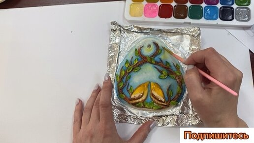 Расписываю весеннюю заготовку акварельными красками.