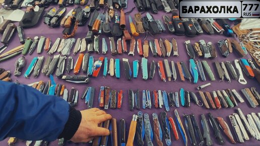 Блошиный рынок в Салтыковке. Большой выбор складных ножей.
