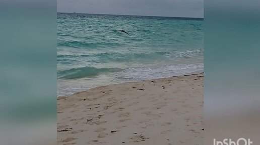 Пеликан ловит рыбу. Куба
