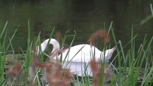 ЛЕБЕЛИ на небольшой речке. Взрослый и птенец лебедя