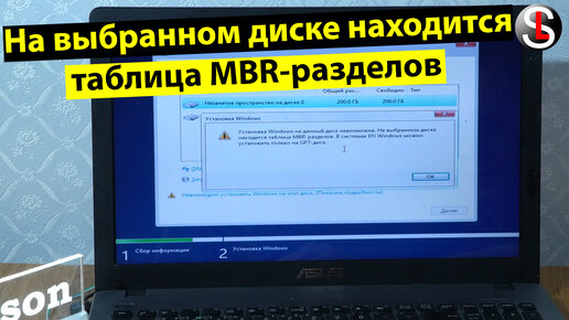 Не удается установить Windows на диск с таблицей MBR-разделов