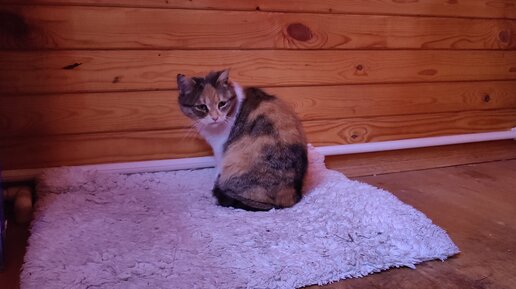 Пустили в дом бездомную кошку и приучили ее спать на теплом топчане. Кошка уже знает свое место в доме. Пока кошка лижется, разожгли мангал