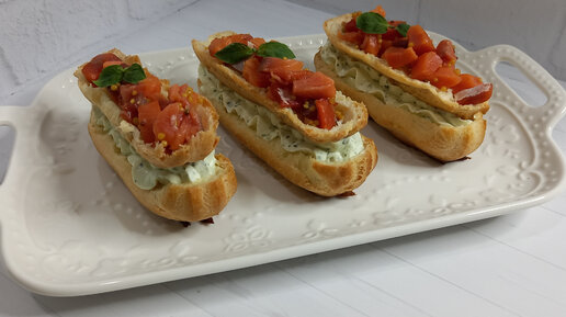 Эклеры с слабосоленой семгой и базиликовым кремом😋