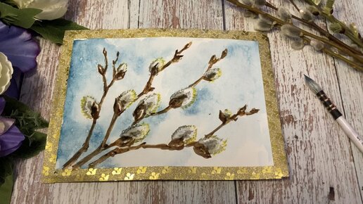 Ветка вербы акварелью. Рисование для начинающих. Мастер-класс по рисованию. Рисунок верба. Вербное воскресенье