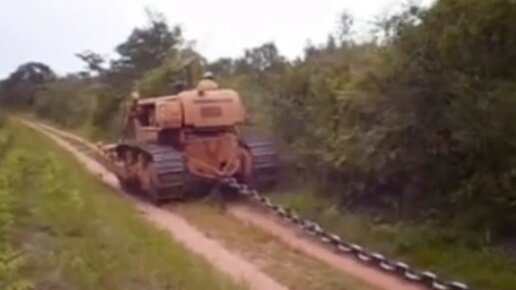 Бульдозер.Цепь.Зачистка от деревьев и кустов.