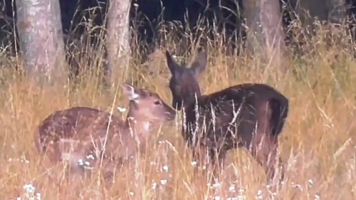 Олененок встретил своего черного собрата