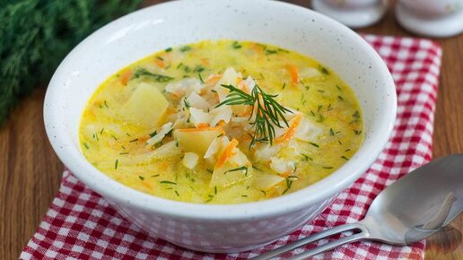 Суп с приятной сливочной ноткой. Суп с капустой и плавленым сыром.