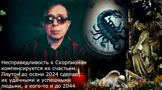 Несправедливость к Скорпионам компенсируется их счастьем. Плутон до осени 2024 сделает их удачными и успешными людьми, а кого-то и до 2044