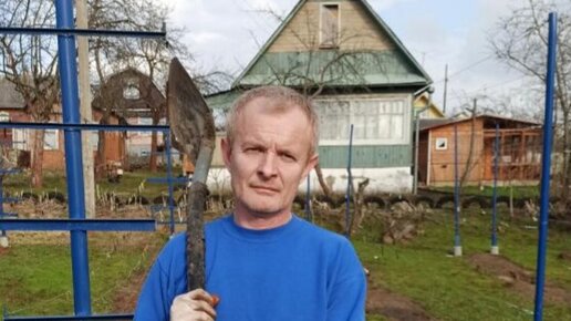 Откапываю виноградную лозу из земли, чтобы укрыть для ранней вегетации.