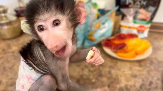 Степашка научился БРАТЬ РУКАМИ еду и ест, не останавливаясь)))