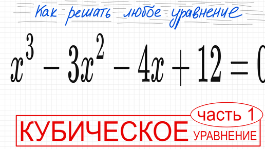 №5 Кубическое уравнение x^3-3x^2-4х+12=0 2 способа решения Разложить на множители Безу Как решить уравнение третьей степени 9кл ОГЭ 11кл ЕГЭ