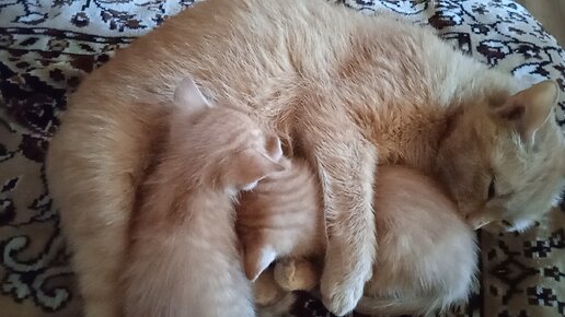 Рыжики растут,молока у мамки мало.Учятся пить из миски,правда не охотно.