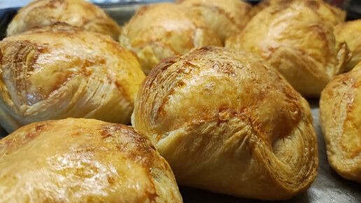 Вкусные Хачапури с сыром из слоеного теста. Просто и быстро, хрустящее тесто.