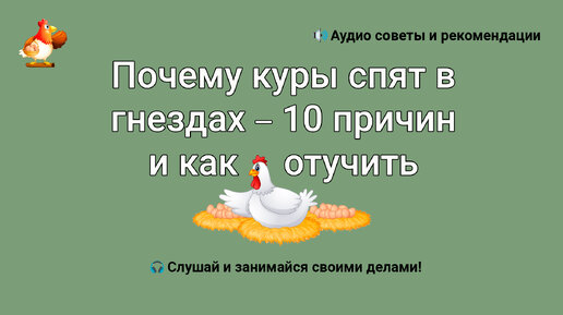 Слушать: Почему куры спят в гнездах – 10 причин и как отучить