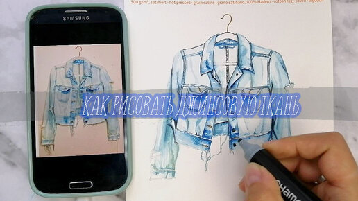 Как рисовать одежду акварелью, джинсовка акварелью.