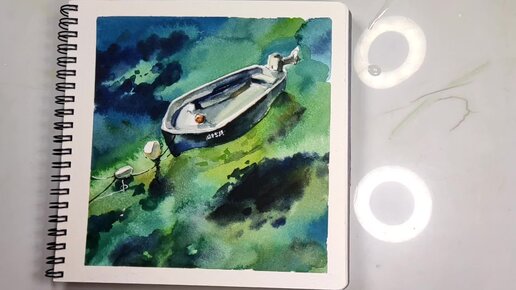 Лодочка акварелью! Все таки научилась, что бы хлопок не ел синие.
