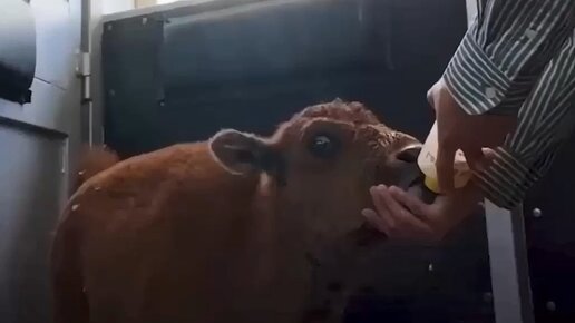 Эх, и непростая судьба у этого малыша бизона. Крошка осталась совсем одна, но добрые люди не смогли пройти мимо