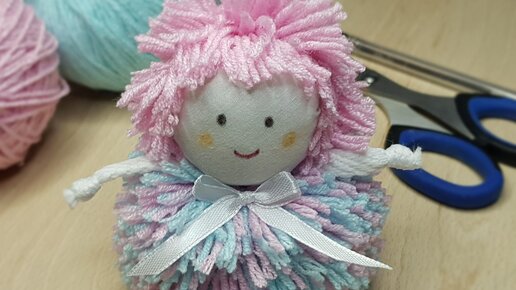 Милая куколка толстушка из 2 помпонов своими руками