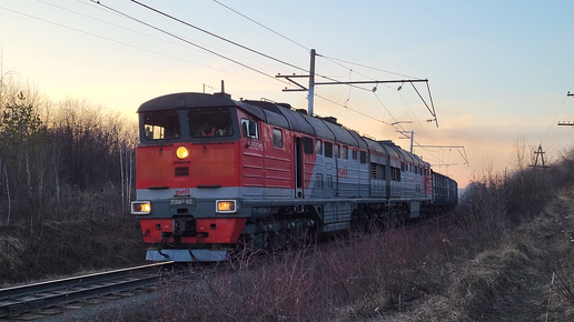 "На закате дня" Тепловоз 2ТЭ116К-912 с вывозным поездом и весенний атмосферный вечер