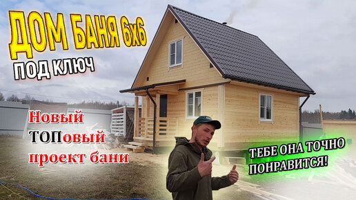 Дом Баня 6х6 из бруса под ключ с мансардой - ТОПовый проект от СК Доминика