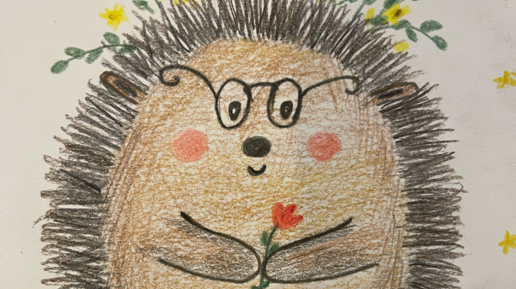 Забавный ежик. Мастер класс для детей цветными карандашами.