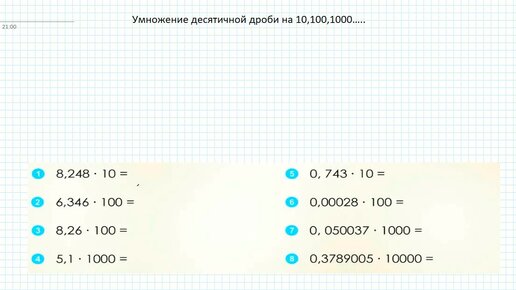 Умножение и деление десятичных дробей на 10, 100, 1000 ...