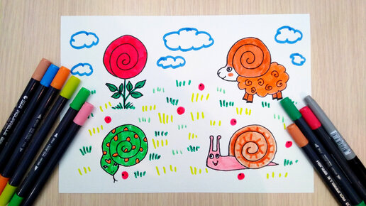 Показываю, как нарисовать 4 рисунка из спирали