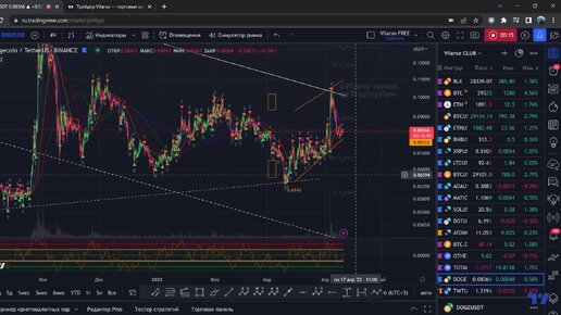 DOGE - Памп и дамп на новостях от Илона Маска. Ожидания по рынку. Видеообзор криптотрейдера Vilarso на графике за 10 апреля.