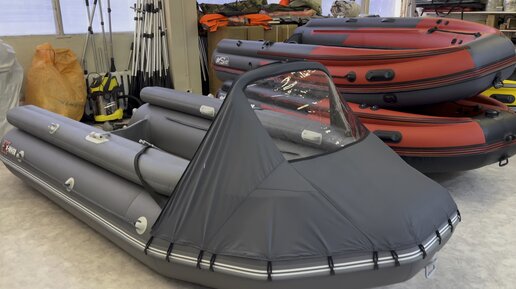 Тент КОМБИ на лодку X-River Rocky 395F с фальшбортами