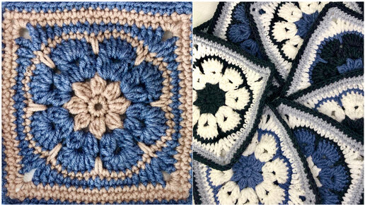Узор крючком "Африканский цветок" в квадрате. Мотив для сумок, пледов, кардиганов