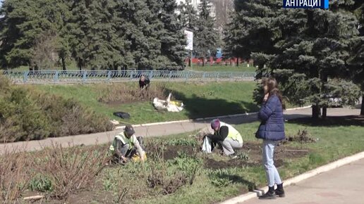 ТК "Родной". Сотрудники МУП «Антрацитовское Зеленое хозяйство» продолжают благоустройство города. 11.04.23