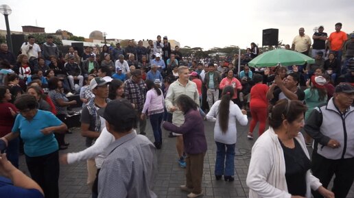 Дискотека тем кому за 50 в Лиме! Перуанские старички не унывают и пляшут прямо в центре столицы.Танцоров из России встречают очень тепло!
