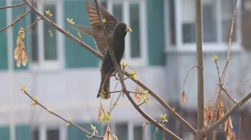 Что он творит Скворец это или я ошибаюсь ? Красивая птичка